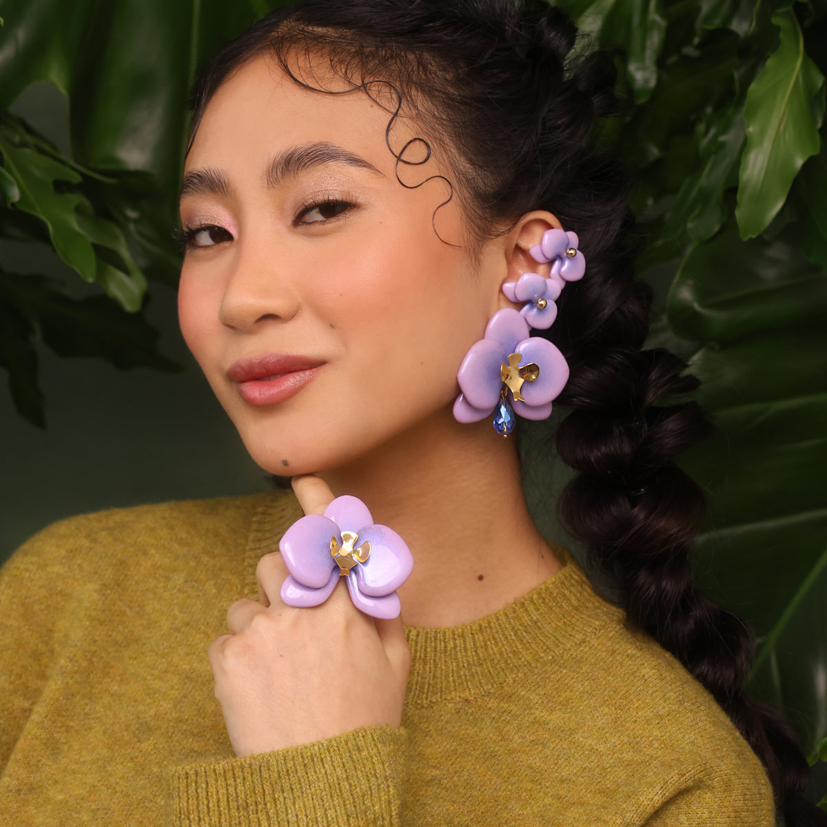 Hecho a mano en resina ecológica centro y estructura de plata 950 y baño de oro 18K Ajustable.