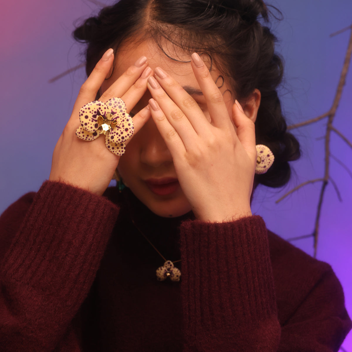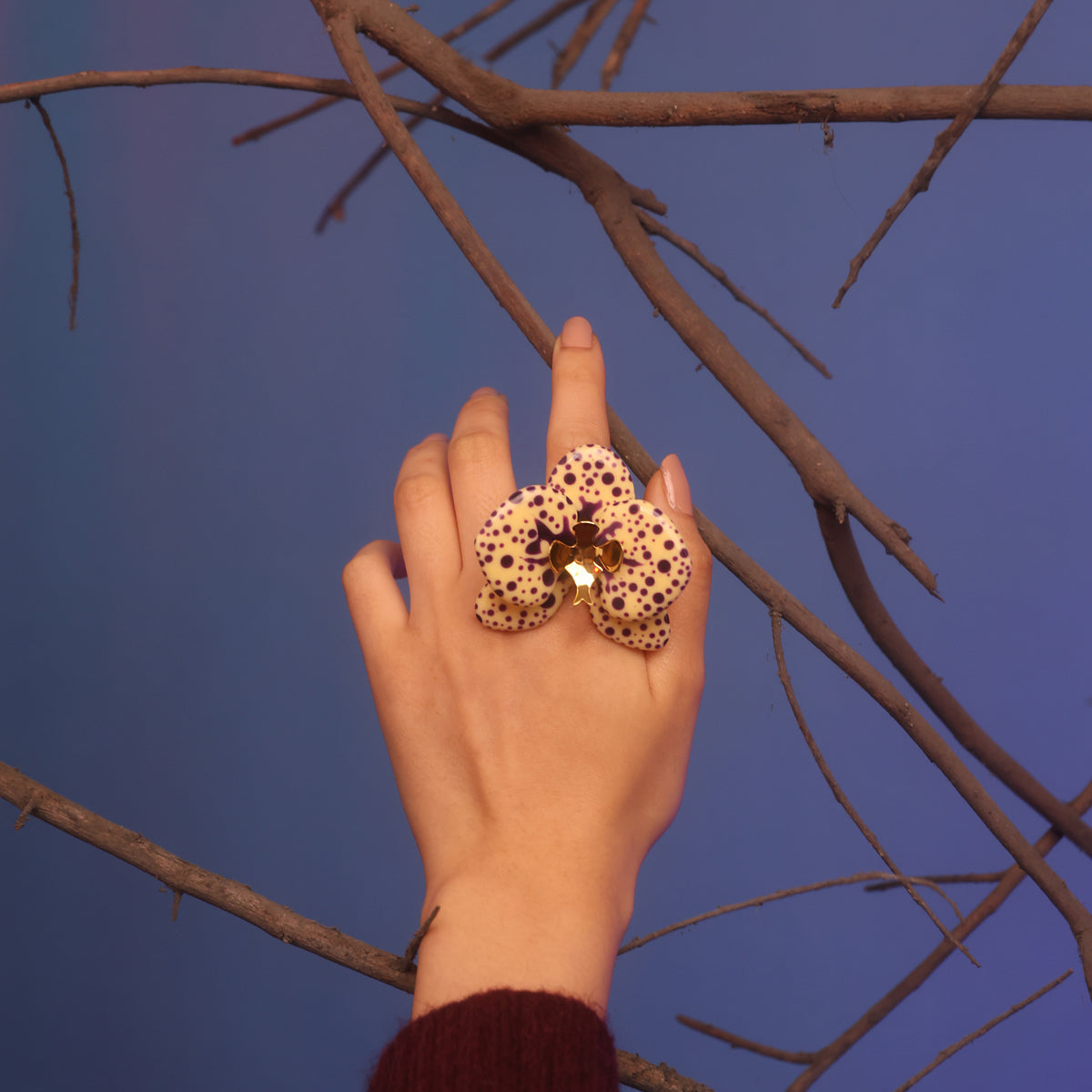 Hecho a mano en resina ecológica, centro y estructura de plata 950 y baño de oro 18K Ajustable.
