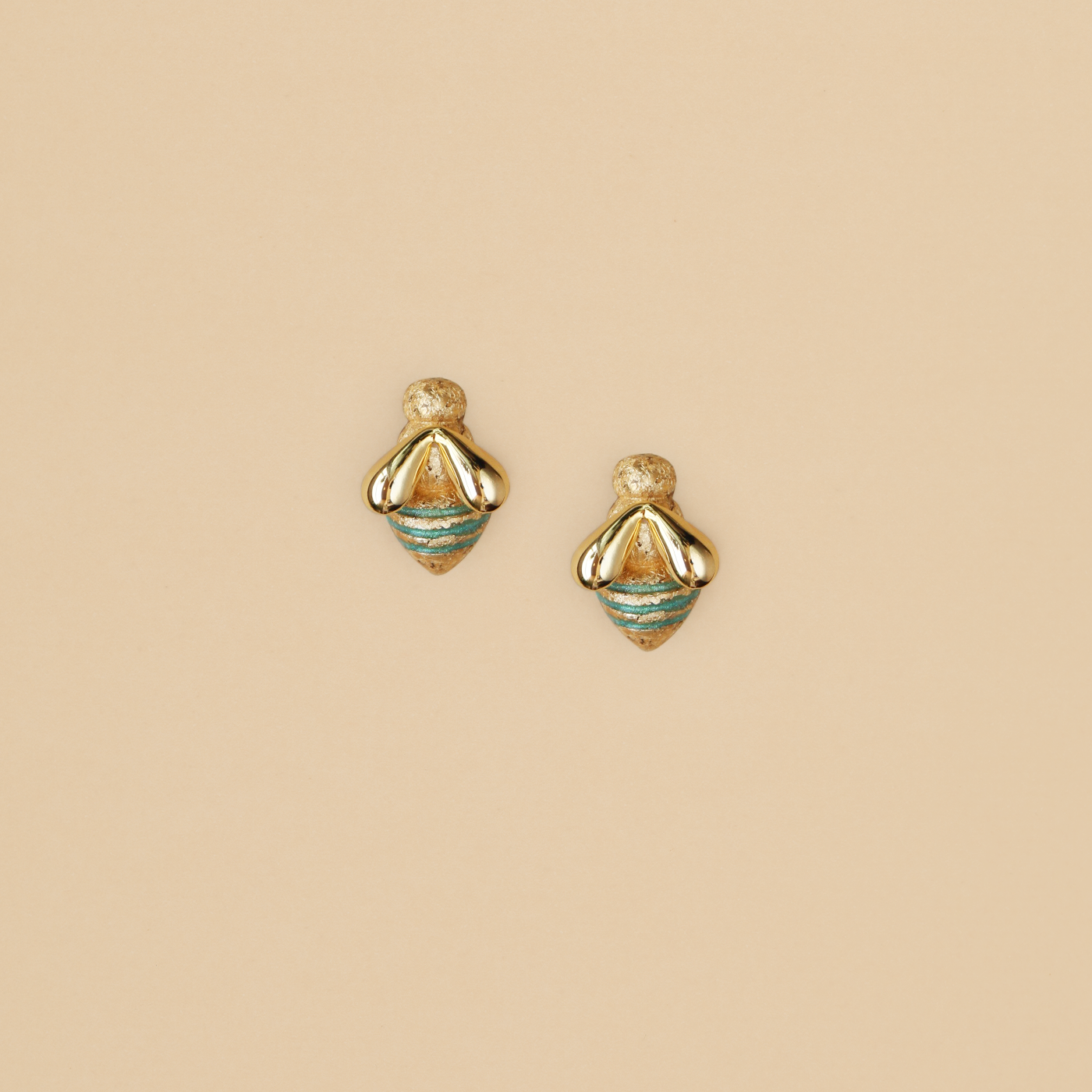 Hechas a mano en resina ecológica, palitos de plata 925 y alas de plata 950 con baño de oro 18K.