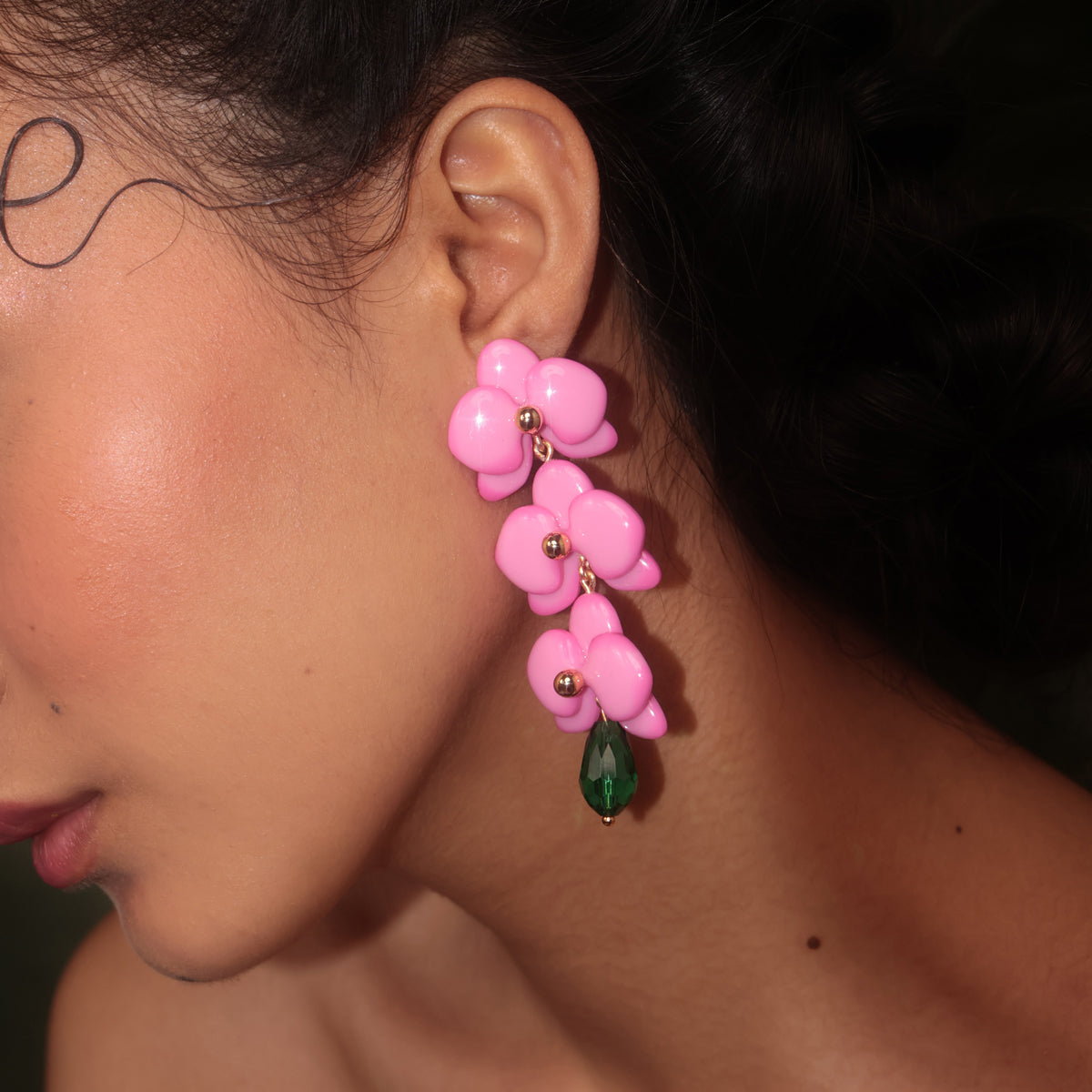 Hechos a mano en resina ecológica, palitos de plata 925, lágrimas de vidrio y botones de plata 950 con baño de oro 18K.