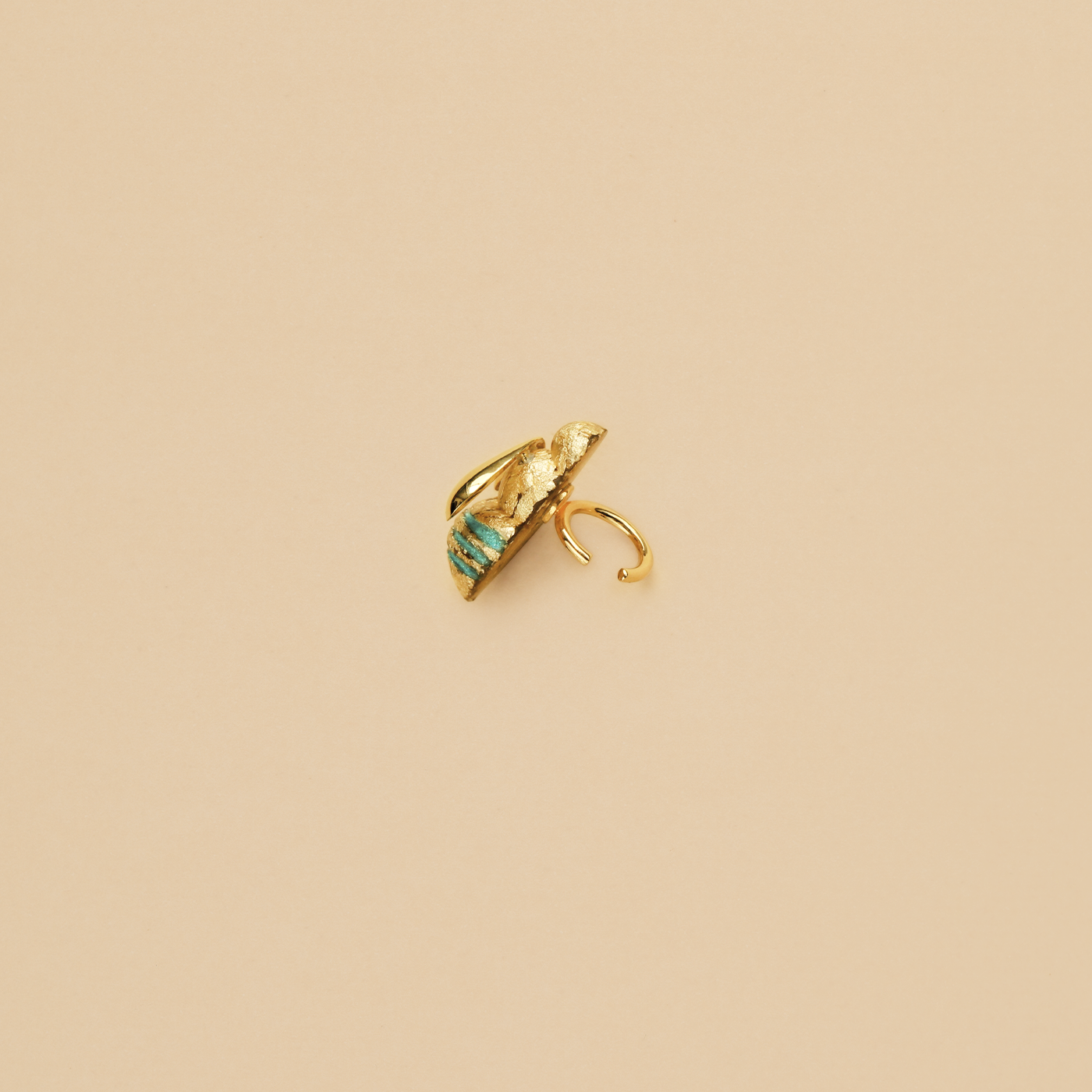 Anillo de oreja hecho a mano en resina ecológica con alas y estructura de plata 950 y baño de oro 18K Ajustable.