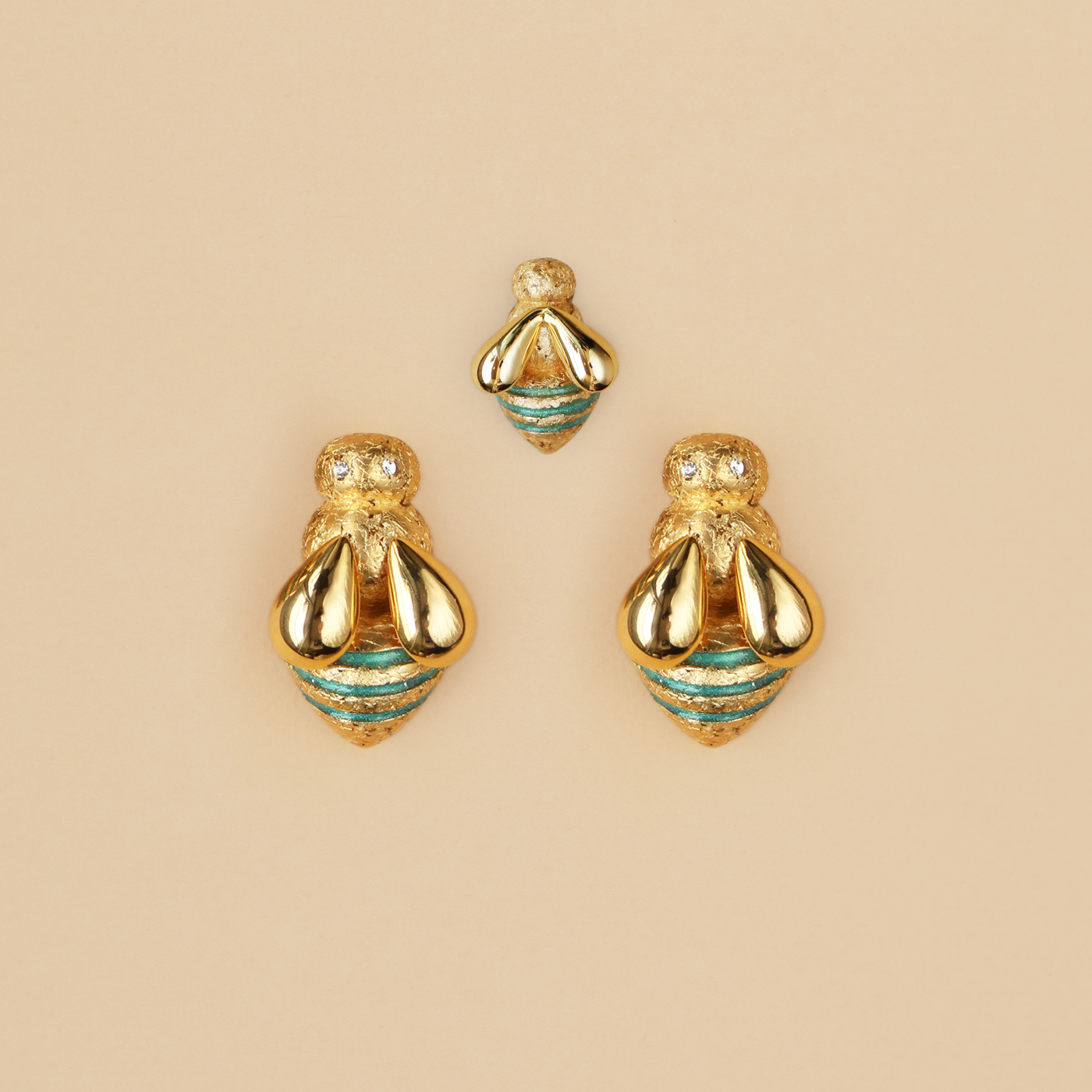 Hechas a mano en resina ecológica, palitos de plata 925, alas y estructura ajustable de plata en baño de oro 18 K.